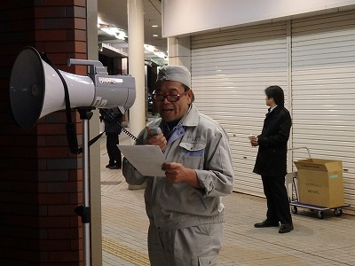↑ 敦賀セメント労組 関書記長の街頭演説