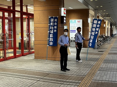 連合福井嶺南地協役員、女性委員、推薦議員、連合福井執行委員からの協力をいただいて、「男女平等参画社会」や「ハラスメントと暴力の禁止」について呼びかけをしました!