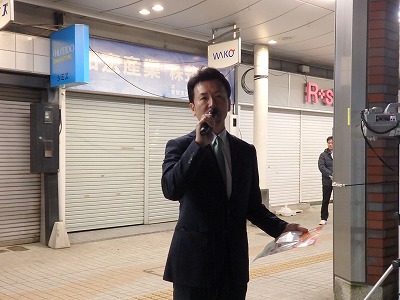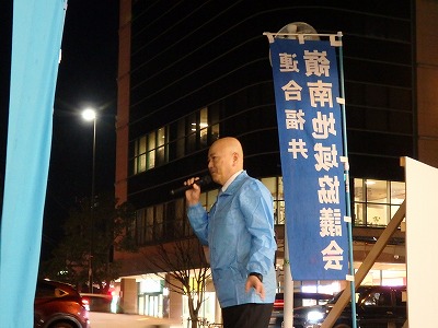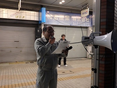 ↑ 原電労組 山本武志 本部副執行委員長の街頭演説