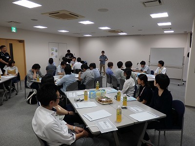 2018年7月27日(金)に北陸労働金庫敦賀支店の2階をお借りして、嶺南地協ユースター主催の「敦美地区勉強会」を開催しました。今回は、若い世代の組合員と福祉事業団体若手職員との交流も含めて「福祉事業団体を知ろう」をテーマとし、開催にあたっては、北陸ろうきん・全労済・県民生協・ユニオントラベル・連合福井嶺南地協で構成する「チームろうふく嶺南」との共催事業として行いました。