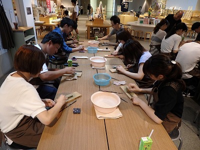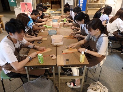 【箸研ぎ体験の様子】