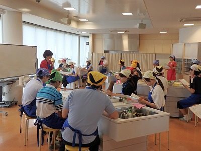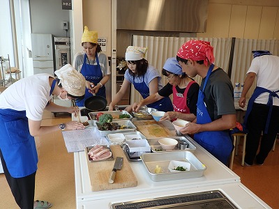 2018年7月28日(土)御食国おばま食文化館にて、嶺南地協ユースター主催の「若狭地区勉強会」を開催しました。今回は昨年に引き続き「地産地消と地元食材の勉強」をテーマにした若狭地域の食材を使った料理教室を行いました。これに加えて今回は若狭の伝統工芸である若狭塗箸の「箸研ぎ体験」も行い、各自精根込めて研いだ自分だけの箸で、料理教室で作った料理を食べるという企画でした。