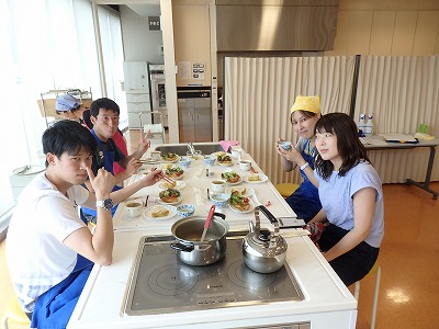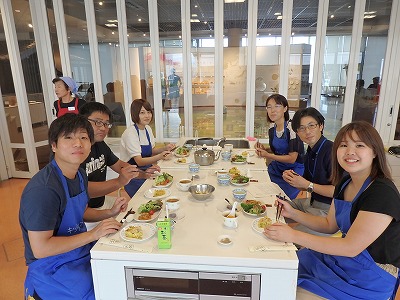箸研ぎ体験の後は、会場をキッチンスタジオに移して”料理教室”