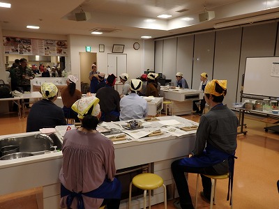 2019年10月18日(金)御食国若狭おまば食文化館にて、嶺南地協ユースター主催の若狭地区勉強会を開催しました。今回は「地産地消」「食育」をテーマに、「地元食材を使った料理教室~小浜の魚でイタリアン~」と題した料理教室を行い、若い世代の組合員の皆さん28名に参加していただきました。