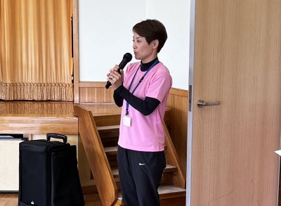 今回は身体の構造について角森先生から模型を元に説明いただいた後に、準備ストレッチ→体幹トレーニングという流れで実施しました。