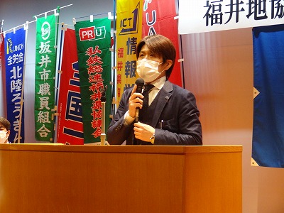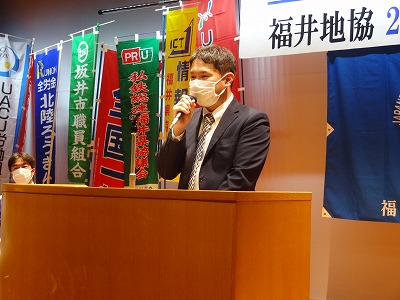 【激励のご挨拶をただいた連合福井橋岡副会長】