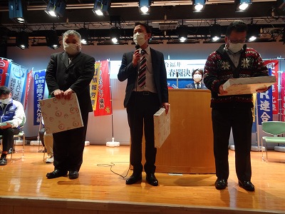 本春闘はコロナ禍で何かと不安が付きまとうかもしれませんが、本決起集会で気持ちを奮い立たせて、組合員の生活と命を守るために一致団結して共に頑張りましょう!