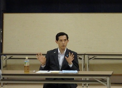 2019年6月27日(木)、小浜勤労福祉会館にて「松崎市長と語る会」を開催しました。この取り組みは、連合福井嶺南地協・若狭地区連絡会が実施しており、市長と日頃から接点を持ちながら、組合員の意見・要望等を市政の場に反映できる体制づくりを目的としているもので、今回で6回目を数えます。