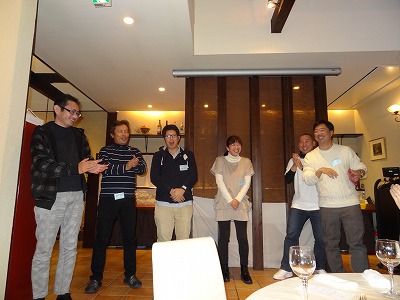 また、ランチ交流会の閉会では2019年度役員の方々が登壇し、笑いを誘うようなご挨拶をいただき、最後に竹原前議長の計らいで、緊張する吉田議長代行のガンバロー三唱で締めくくられました。