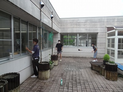 美山荘のボランティアは、足羽学園での活動を予定していた方にも協力いただき37名での活動になりました。途中休憩をはさみながら手分けして作業を進め、普段なかなか手の届かない場所も掃除していきました。
