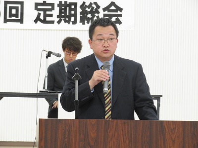 第1号議案「2024年度活動方針(案)」を松浦副議長、第2号議案「2024年度一般会計予算(案)」を堀川事務局長、 第3号議案「福井市長選挙必勝決議(案)」を平井副議長が提案し、全て可決しました。
