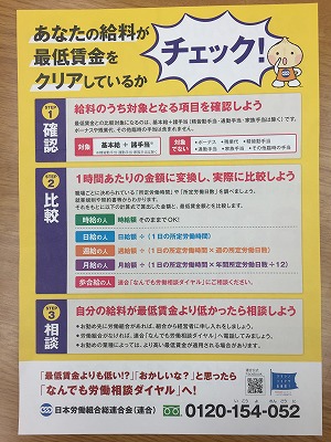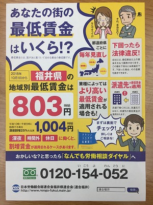 福井県最低賃金時間額「778円→803円」に改定!周知活動