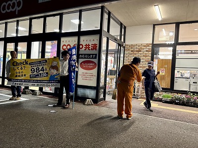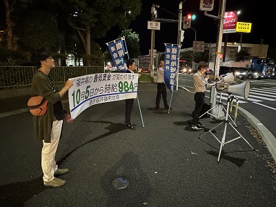 2024年10月5日から福井県最低賃金が改定されるのを目前に控え、10月2日(水)に敦賀市「ハーツつるが」及び若葉町交差点周辺にて周知活動を実施しました。街頭演説や「福井県の新最低賃金時間額」等が書かれたウェットティッシュを配布し周知活動を行いました。