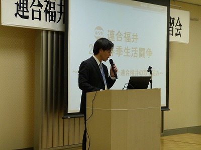 連合福井2020春闘方針については、岡本部長から連合福井が示す福井県内の賃金水準と加盟組合に対する春闘の取り組みに対する支援策について説明があり、「働き方改革を職場に定着させよう!」と題して2019年4月に改正された労働基準法の定着と2020年4月以降順次施行される項目について、社会保険労務士の森口美和子氏を招いて学習を深めました。