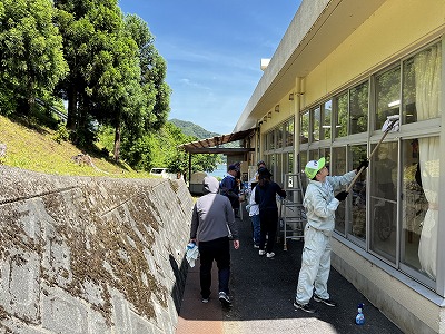 「新型コロナウイルス感染症が5類へ移行されたが、社会福祉施設では面会制限を行うなど油断できない状況が続いている。このような状況の中で施設管理の手の届かない部分を作業いただいた」ということで施設長からも感謝のお言葉をいただきました。