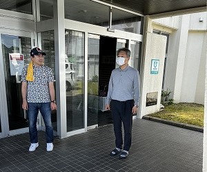 ↑ 若狭ハイツの宮川施設長(右)から御礼のご挨拶