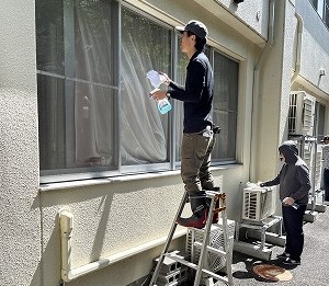 <室外の窓ふき>