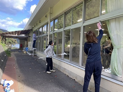 <室外の窓ふき>
