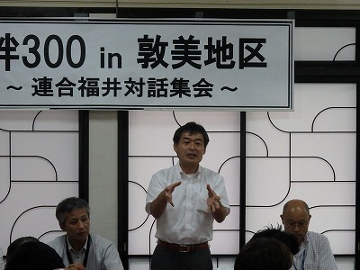 対話会の後は会場を移して、交流会も行いました。対話会の中だけでは話しきれなかったことや、地域の中での交流を深め、本日の「絆300in敦美地区」を終了しました。出席いただいた皆様ありがとうございました!