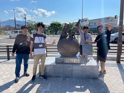 敦賀市内のスポットで記念写真を撮影してポイントを獲得するというルールで実施し、最高気温が30℃を超える中でグループごとでウォークラリーを楽しんでいました。