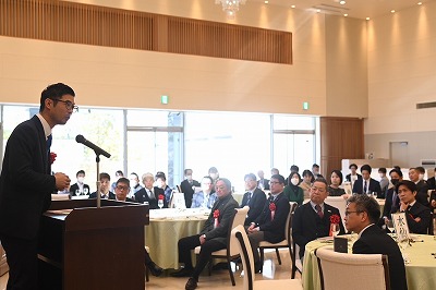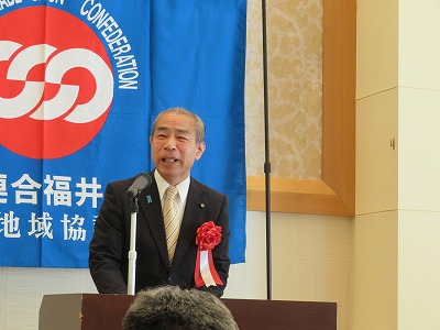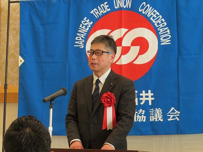 引き続き、後半の「2025新春団結の集い」では、鷲田議長から冒頭の挨拶を述べた後、来賓の方々からの祝辞や祝電で花を添えていただき、福井県労福協の小林事務局長の乾杯の発声で歓談に入りました。