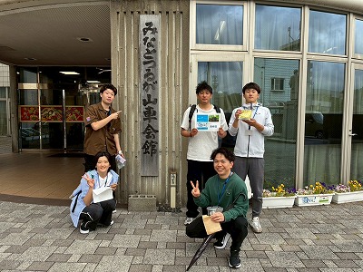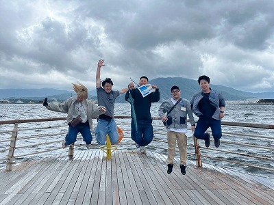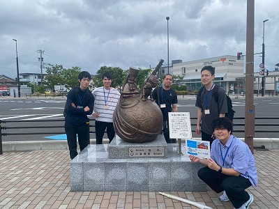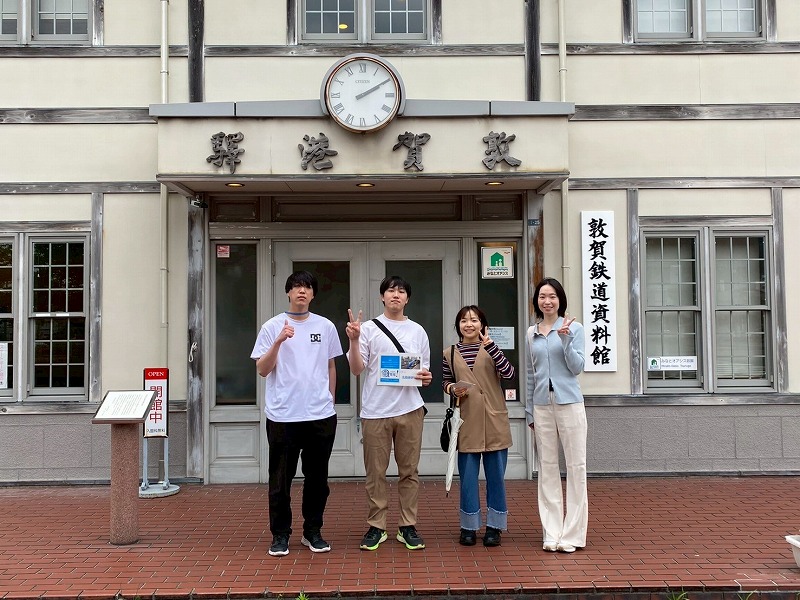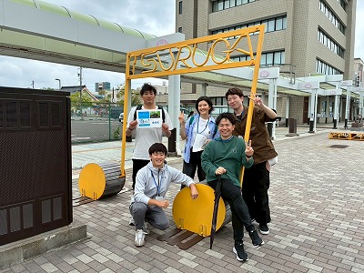 今回は敦賀市内のスポットで記念写真を撮影してポイントを獲得するというルールで実施しました。小雨が降る中での開催となりましたが、グループごとにウォークラリーを楽しんでいました。ウォークラリー終了後には、ポイントをかけたグループ対抗のレクレーションを行い、最後まで順位が分からないレースになりました。