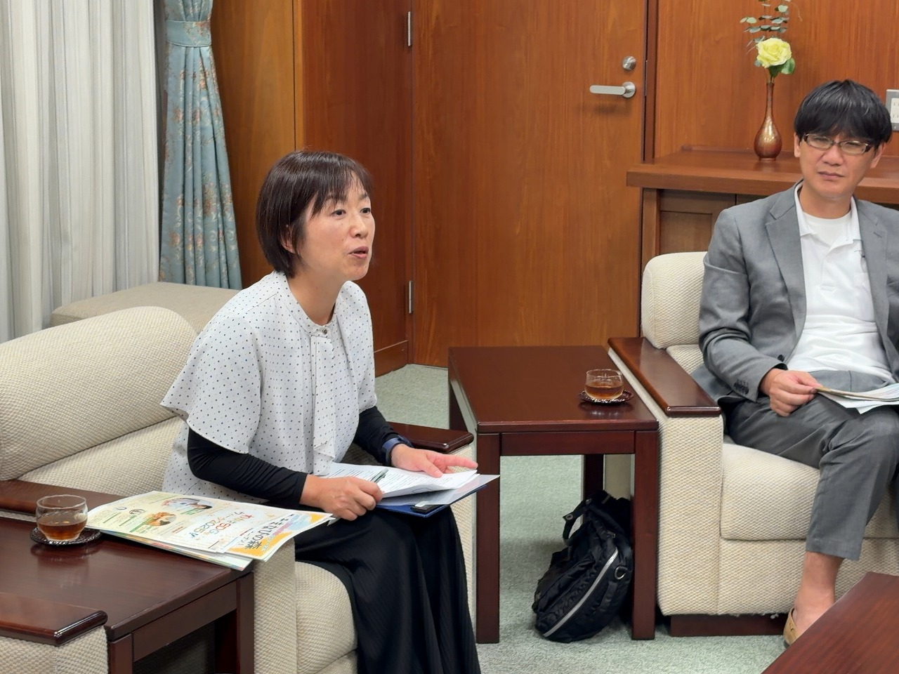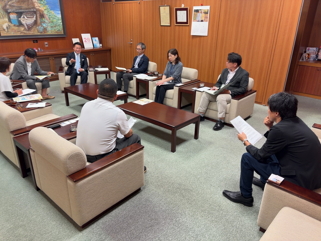 今回の渡辺町長と語る会には、渡辺町長をはじめとして、竹内総務課長、井口総務課長補佐、職員組合の澤崎組合長にもご参加をいただきました。