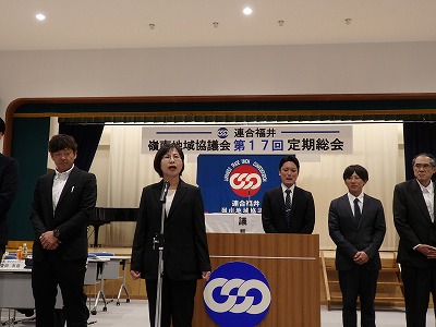 今年度は、組織力を高める活動では「参加しやすさ」を追求し、ニュースポーツの導入、また、政治・政策関係では1年ぶりに敦美・若狭地区それぞれで「議会報告会」の開催及び小浜市では市長が交代されて初めて「首長と語る会」を開催、昨年より多くの地域の出店をいただいた嶺南地区メーデーフェスティバルなど、構成組織及び推薦議員団、地域との連携を意識した1年となりました。