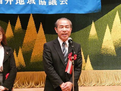 冒頭、友永議長より主催者を代表して挨拶を述べた後、来賓の方々からの祝辞や祝電で花を添えていただき、福井県労福協の小林事務局長の乾杯の発声で歓談に入りました。