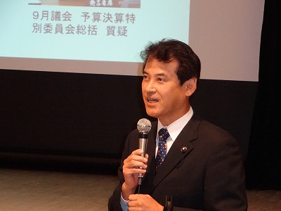 議会報告の主な内容としては、直近の9月議会で各議員が行った一般質問や代表質問の内容と、各議会で審議した特に重要案件について報告されました。