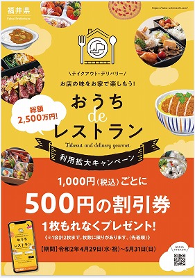 福井県が「コロナウイルスに負けるな!緊急企画『テイクアウト・デリバリー利用拡大キャンペーン』」の一環として開設したWEBサイトです。