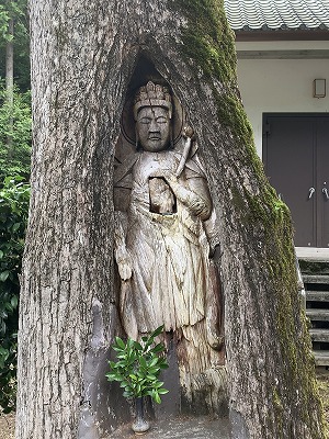 樹齢約450年のイチョウの大木に彫られた十一面観音で、取材に訪れた当日も、地元の数十人の方々が清掃作業をされており、地域の皆さまにも大切にされ、町の指定文化財にもなっています。