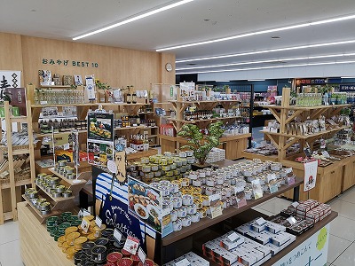 売店では鯖寿司や笹カレイの干物、若狭塗や若狭和紙など