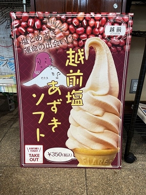 この日、私は「えび天丼セット+若狭牛コロッケ」、食後に「越前塩あずきソフト」を食べましたが、大満足でおすすめです!