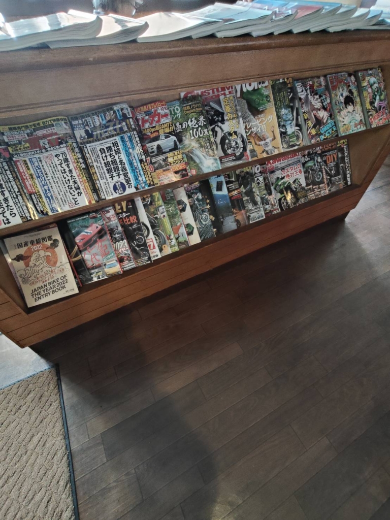 オーナーがバイク好きということもあり、店内にはバイク雑誌も豊富に揃っています。