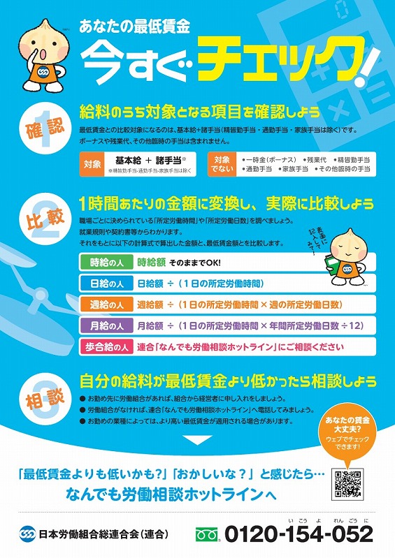 最低賃金は、会社が従業員に支払わなければならない最低額であり、この額を下回る賃金は法律違反となります。皆さんもこの機会にぜひ「最低賃金」のこと知ってください!