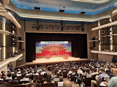 初日は那覇文化芸術劇場「なはーと」にて2023平和オキナワ集会が開催されました。オープニングで琉球舞踊があり、沖縄の文化を生で見る事が出来ました。続いて琉球大学の山本章子准教授による「日米地位協定と沖縄」と題した講演がありました。題名にある様に日米地位協定は「米軍機の飛行を規制出来ない」など、日本にとって非常に不利な協定であると再認識しました。また、日本国土の0.6%に過ぎない沖縄に全国の米軍基地等の専用施設が70.4%あるという事実を知りました。