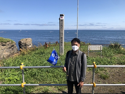 2日目は「2022平和ノサップ集会」に参加しました。車で宿泊宿から納沙布岬に向かいました。岬に近づくにつれ「返せ!北方領土!!」といった表現の看板が散見され、何とも言えない緊張感を抱きつつ岬に向かいました。岬に到着し驚いたのは、歯舞群島の水晶島が目と鼻の先にある事。泳いでも行けそうな距離に感じました。岬に立ち感じた感情は、何とも言えぬ悲しい気持ちです。岬自体が広陵としていて殺風景な事も理由の一つですが、過去の悲しい歴史が私にそのような感情を抱かせたかと思います。沖縄へ何度か旅行で訪れた事がありましたが、私の中では沖縄のそれと同じです。