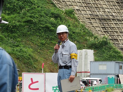 ダム建設の意義と従事者に敬意を表した上で、「慣れた環境ほど気を付けなければいけない。竣工まで4年余りを残す中で最後まで良い意味での緊張感を保って災害ゼロに取り組んで欲しい。また、建設業における2024年問題のこともあり、労務管理や働き方の課題もあると思うが、皆さんが心も体も健康に働くことができるよう、引き続き安全衛生の取り組みをお願いしたい。」