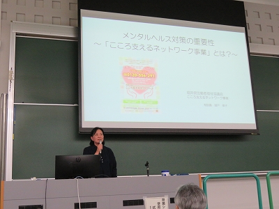 これから社会に出ていく学生へのアドバイスとして、しんどくなり体調に異変を起こしてからでは遅いので、まずは悩んでいることを家族や友人に話すことが大切で、周りの人にも相談しづらければ、「こころ支えるネットワーク」などさまざまな相談機関を利用することが出来ることを伝えて締め括りました。