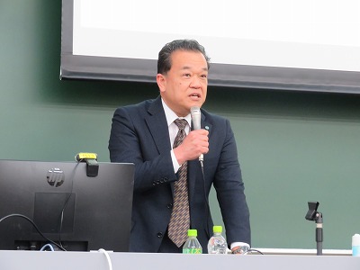 最後に、「働くことは賃金を得ることだけではなく、生きることに直結するので、しっかりと卒業後に自分が何をしたいのかを考えておかなければならない。この寄付講座では、そのきっかけとなるような講義にしていきたい。」と伝えて締めくくりました。