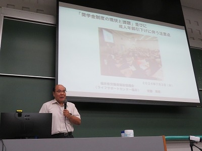 2024年7月3日の寄付講座は、福井県労福協 宮腰事務局次長から奨学金制度と成人年齢引下げに伴う注意点についての講義をしていただきました。