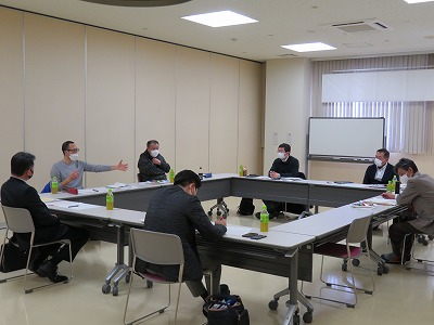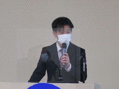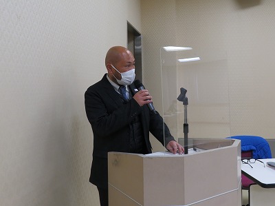 この交流学習会は二部構成で行い、第一部では「学習会」として、連合福井の岡本局長から「2023春闘の基本スタンスとポイント」について説明した後、この後の「グループ情報交換会」のオリエンテーションも行いました。