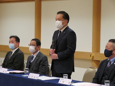 冒頭に、連合福井の矢野会長から福井県経営者協会の光野会長へ要請書を提出した後、両会長から今春闘を取り巻く環境やそれぞれの考え方・スタンスなどが各団体代表あいさつの中で触れられました。