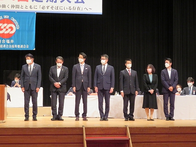 とりわけ、来春に行われる第20回統一地方選挙に関して、県議選立候補予定者の第1次推薦に、現職4名の推薦を決定すると共に、各地協が推薦を決定している福井市議選立候補予定者の現職4名・新人2名、敦賀市議選立候補予定者の現職1名、高浜町議選立候補予定者1名の合わせて8名の推薦確認を行いました。