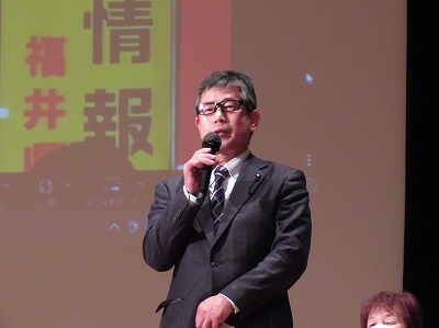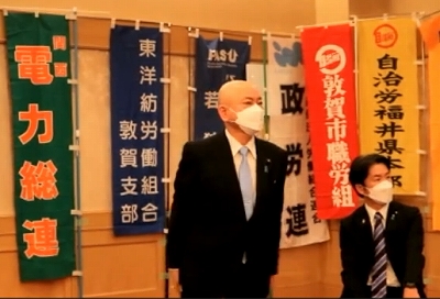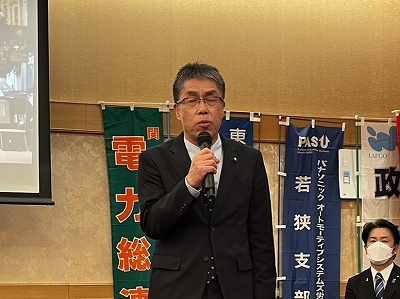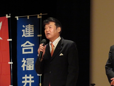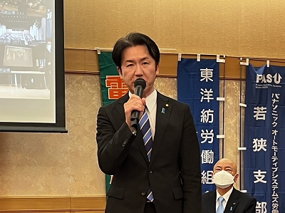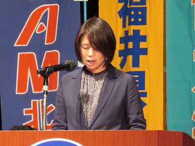 また、統一地方選挙については、「労使だけでは解決できない問題には政治の力が不可欠であり、生活者目線の政治を目指し、地方からその仕組みを変えていかなくてはならない。そのためにも、連合福井が推薦する全員の候補の当選に向け、全力で取り組むことをここに誓い合いたい。心を1つにして、全員の力の結集で前に進んでいきましょう。」と訴えられました。