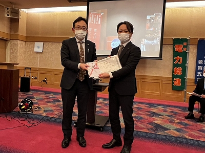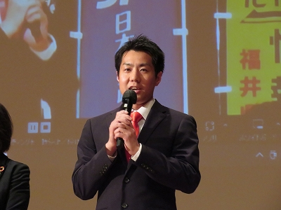 続いて、毎年恒例となっている春闘川柳コンテストの入選作品の発表と表彰を行った後、3会場をリレー中継して連合福井 推薦候補予定者から一人ずつ統一地方選挙に向けた決意の言葉をいただきました。
