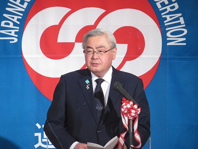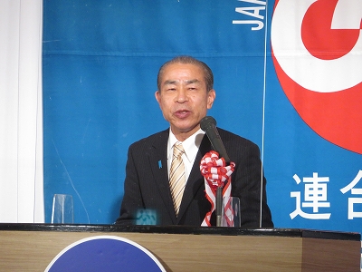 冒頭、矢野会長の年頭のあいさつでは、「物価の上昇が続いて可処分所得が減少し、生活不安が高まっている。今こそ労使での課題共有が必要であり、労働組合も積極的に経営に参画していかなければならない。」と訴え、さらに「政治は地方から動かしていかなければ変わらない。来年4月の統一地方選挙では推薦候補予定者の必勝に向けて全力を挙げて取り組まなければならない。」と述べました。