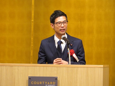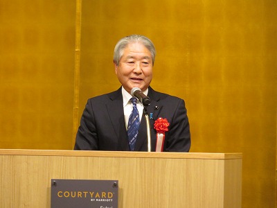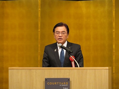 杉本福井県知事をはじめ、来賓7名から祝辞をいただき、橋岡事務局長から祝電の披露を行いました。