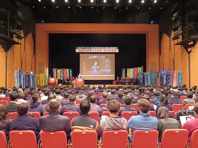 2月27日(木)、福井市アオッサ「県民ホール」をメイン会場に、丹南会場、嶺南会場をサテライト会場として「連合アクション・2025春季生活闘争 総決起集会」を開催しました。